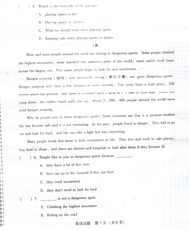 2013年沈阳尚品中学小升初考试英语真题(7)