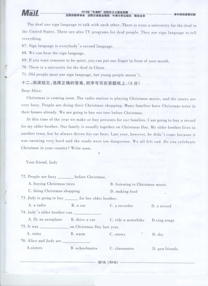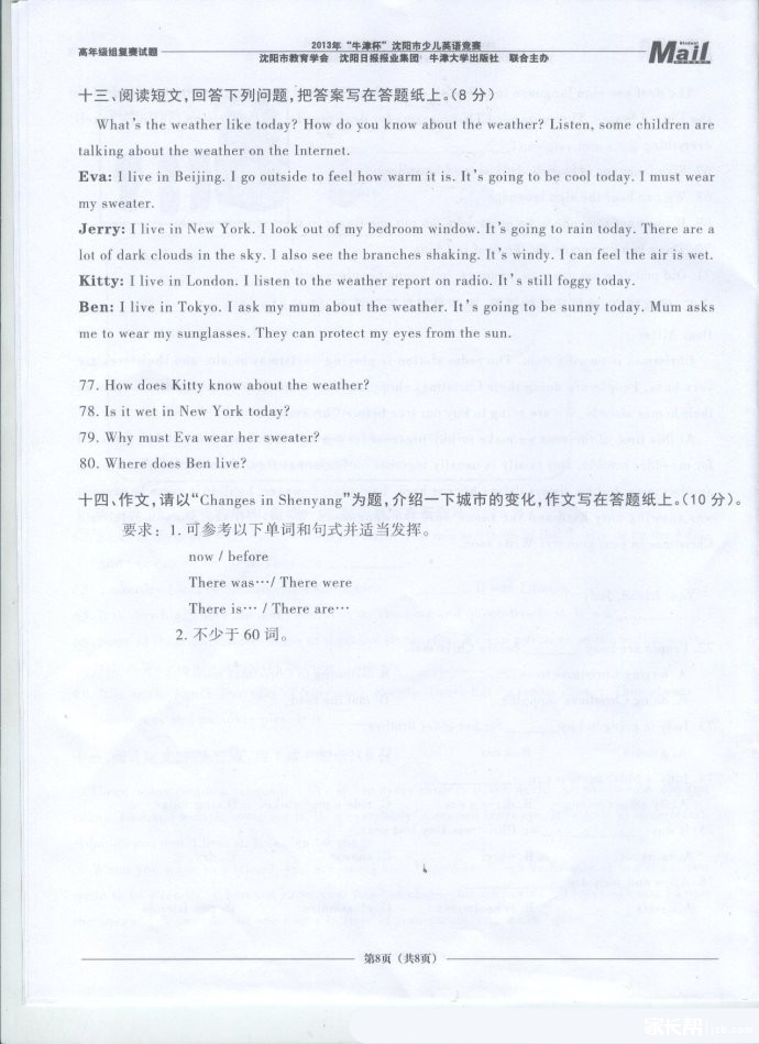 2013沈阳“牛津杯”英语竞赛4-6年级决赛真题(4)