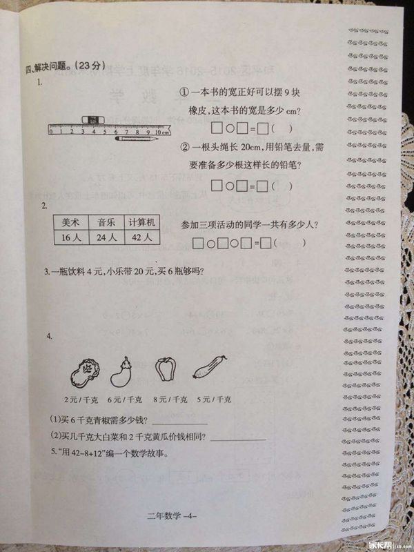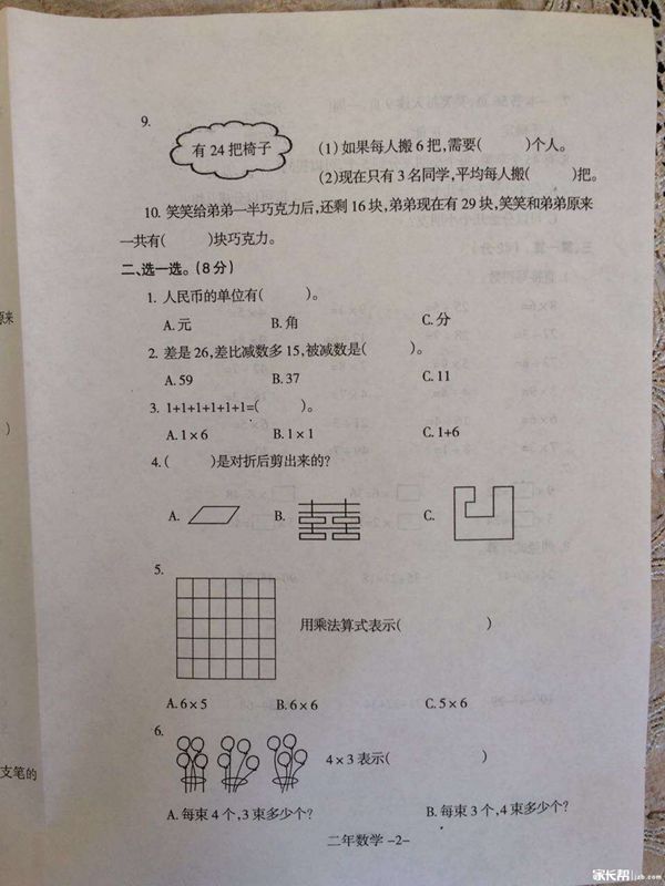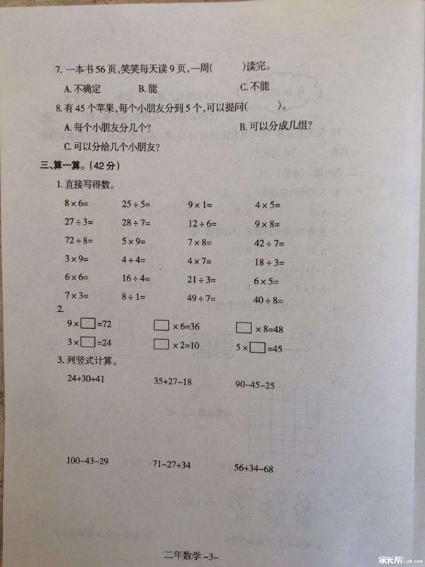 2015-2016学年沈阳和平区二年级数学上册期末考试试卷