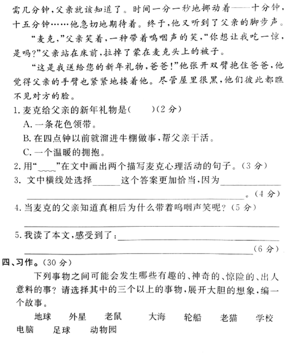 2019年沈阳小学四年级语文期末模拟试题(二)(4)