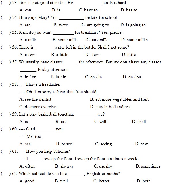 ( ) 7.A. tiedB. tiredC. timeD. tidy