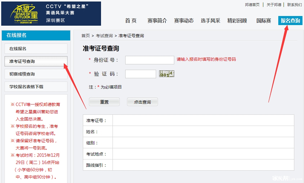 2015-2016年希望之星英语风采大赛深圳赛区选拔赛(初赛)即将在12也29日开考,考生家长们已经准确的查询到深圳希望之星初赛的考试地址了吗?按照下面的指导正确查询希望之星的考试地址吧。