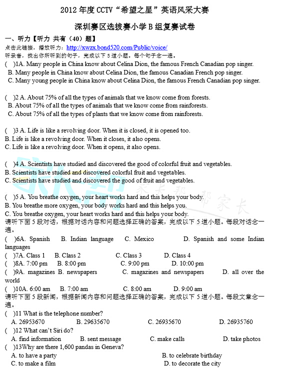 2012年深圳希望之星小学B组复赛真题答案 深圳奥数网 2016-01-08 13:48:05 2012年深圳希望之星小学B组复赛真题及答案 【12年小学B组真题】 >>>点击下载2012年深圳希望之星小学B组复赛真题 【点击下一页查看答案】 首页 上一页 下一页 尾页