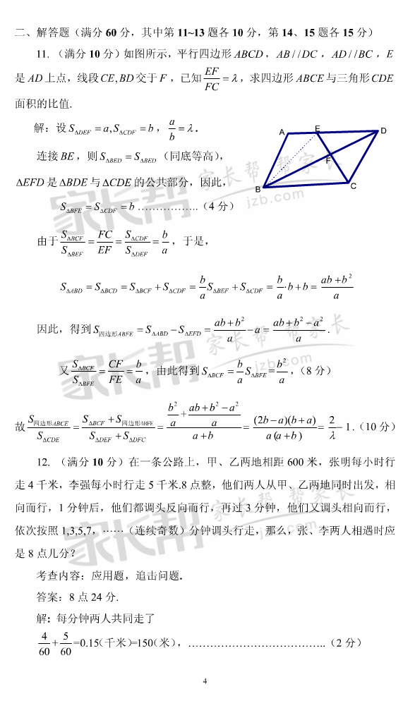 深圳第3届鹏程杯数学邀请赛五年级试卷及答案