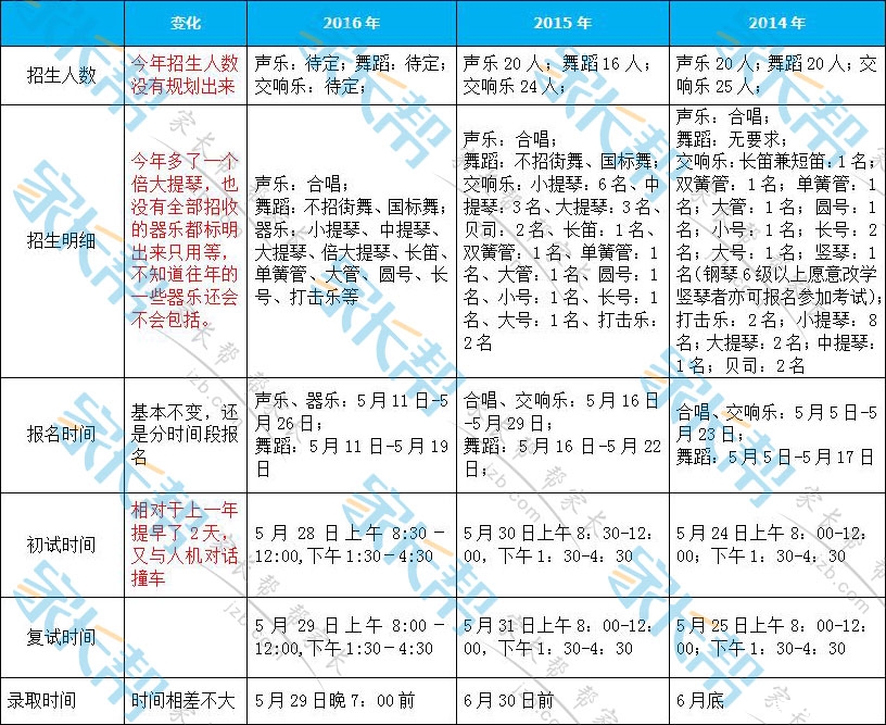 高级中学2014、2015、2016特长生招生情况对比一览表