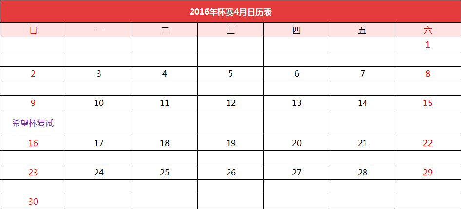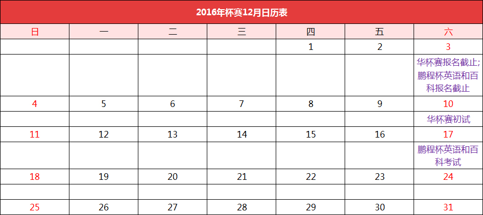 2016—2017年深圳小升初杯赛日历表