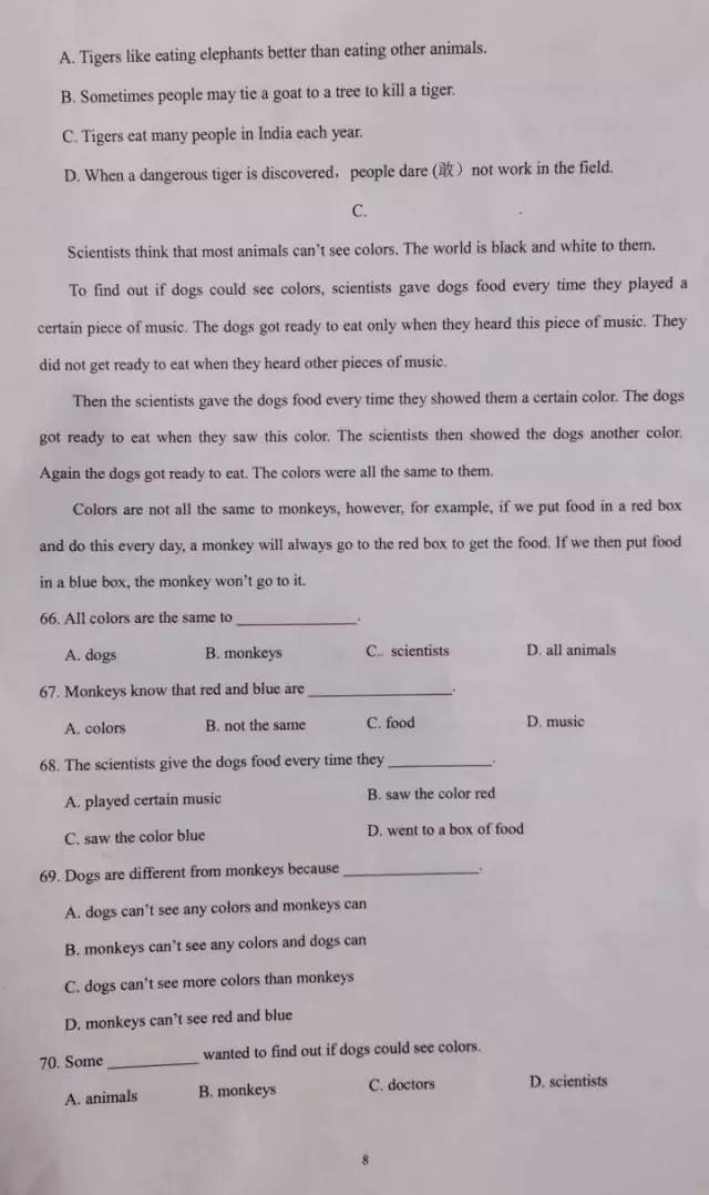 2016深圳第三届鹏程杯英语小高组真题(8)