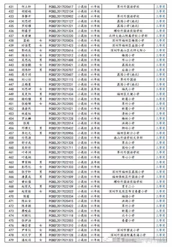 2017年第三届深圳鹏程杯英语邀请赛获奖名单(10)