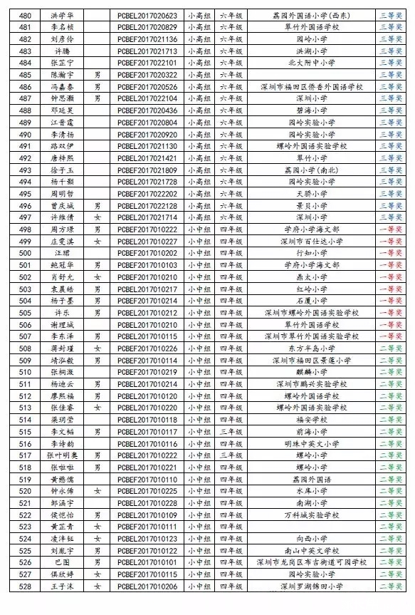 2017年第三届深圳鹏程杯英语邀请赛获奖名单(11)