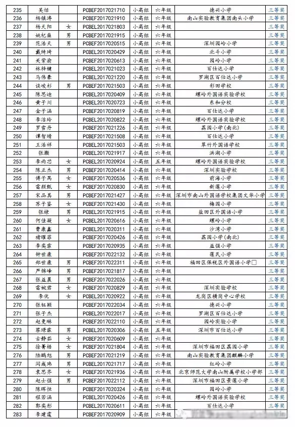 2017年第三届深圳鹏程杯英语邀请赛获奖名单(6)