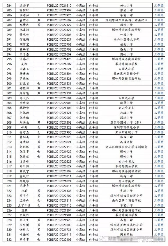 2017年第三届深圳鹏程杯英语邀请赛获奖名单(7)