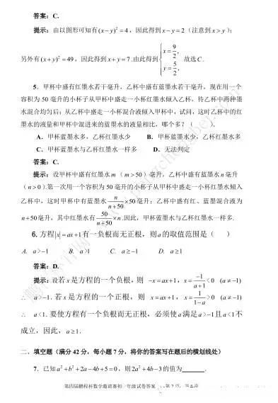 2017年第四届深圳鹏程杯数学初一组试题及答案(2)