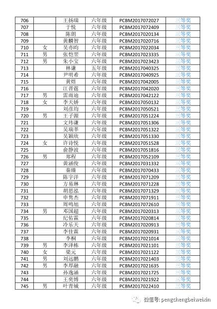 2017年第四届深圳鹏程杯数学获奖名单(18)