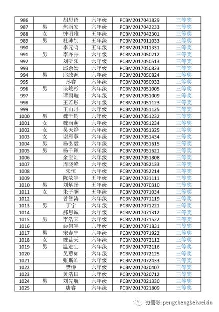 2017年第四届深圳鹏程杯数学获奖名单(25)
