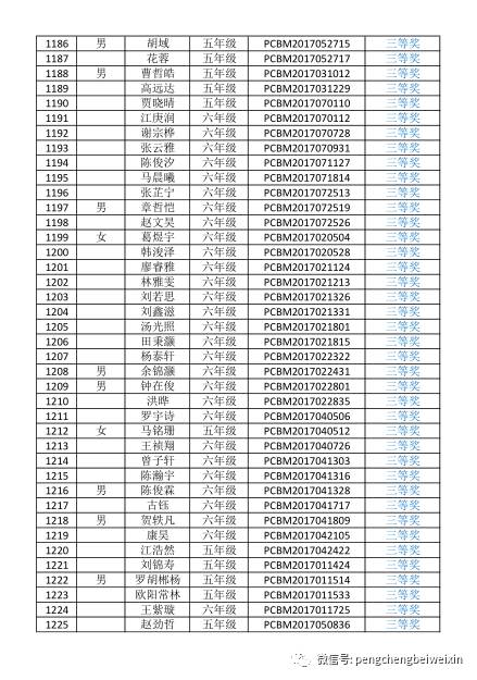 2017年第四届深圳鹏程杯数学获奖名单(30)