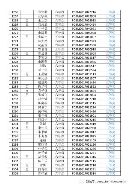 2017年第四届深圳鹏程杯数学获奖名单(31)