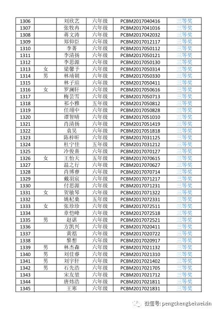 2017年第四届深圳鹏程杯数学获奖名单(32)