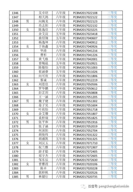 2017年第四届深圳鹏程杯数学获奖名单(33)
