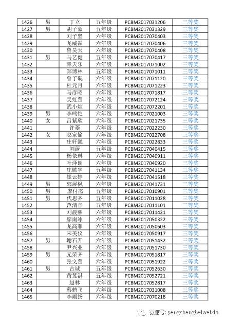 2017年第四届深圳鹏程杯数学获奖名单(35)