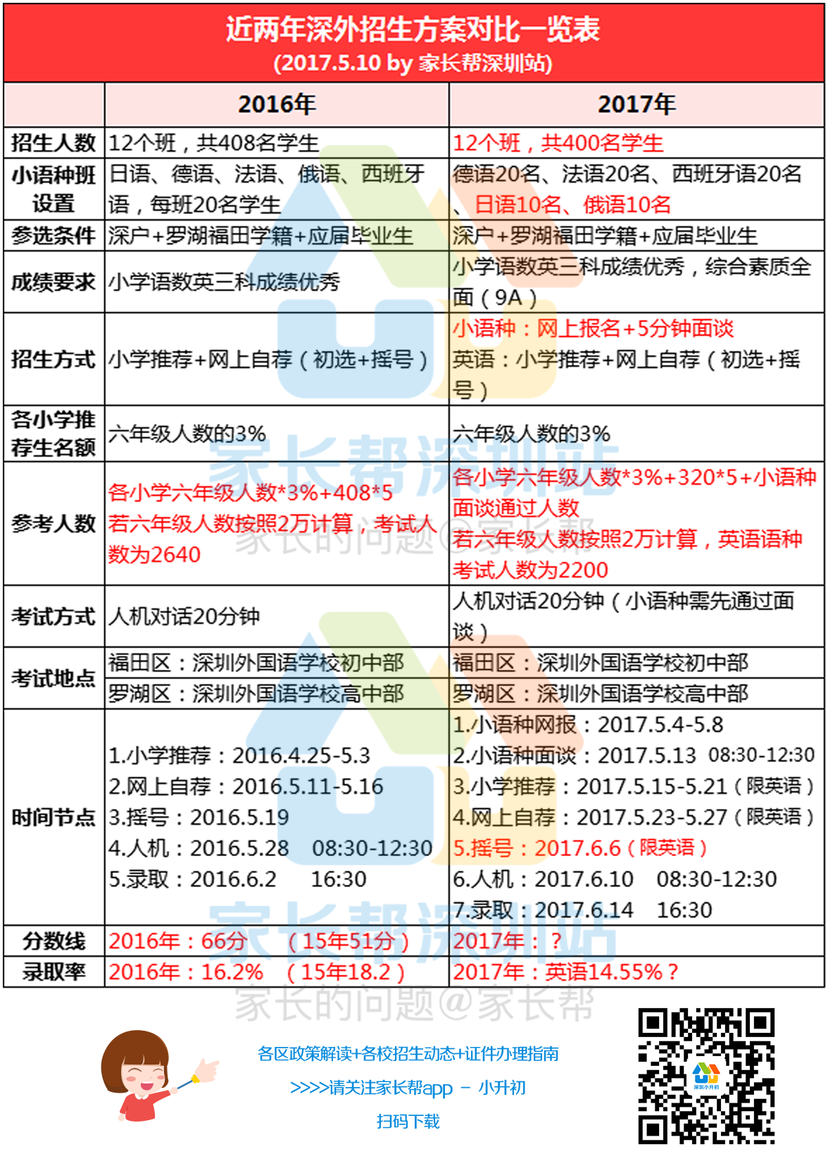 深外作为深圳的五大名校之一,一直备受关注大家关注,结合2017年和2016年深外招生方案变化情况,清心给大家做了一个比对分析,虽然迟了点,但是清心真的有很用心的研究,希望能帮助到小升初的BBMM们~下面一起来看看2017年深外招生的变化方向吧!