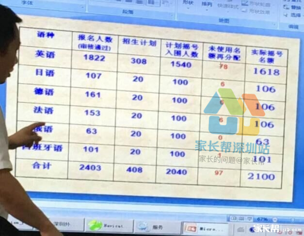 小学推荐的比例近3年都没有变化,每年变化的是摇号入围的比例,2014年的是408*2=816,2015年的是408*4=1632,2016年的是408*5=2040,今年小语种不参与摇号,所以今年是320*5=1600,摇号入围的人数少了440人。但今年所有参与摇号的均为英语科,对比去年的数据,计划入围人数是1540,今年英语科的参考人数反而增加了60人!再加上学校推荐的人数也全部是英语科,今年参加人机对话的英语科的人数将达到2200人!