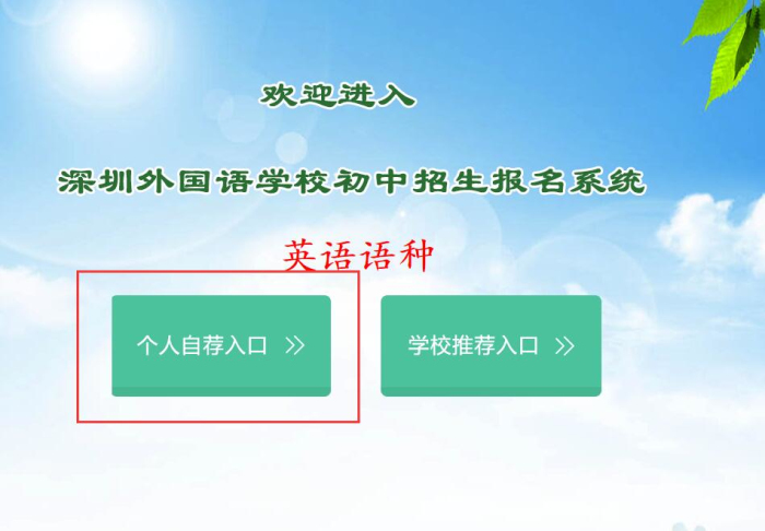 今天早上9点,深外的自荐报名通道终于开启啦!学校推荐没中的这回好机会来了!2017年5月23日 9:00—27日 18:00上深外初中招生报名系统自荐啦!6.6社会摇号的中签率很高的哦!去年社会摇号所有的中签率是87.4%,英语科的中签率是88.8%!今年会是多少呢?我们一起期待哦!