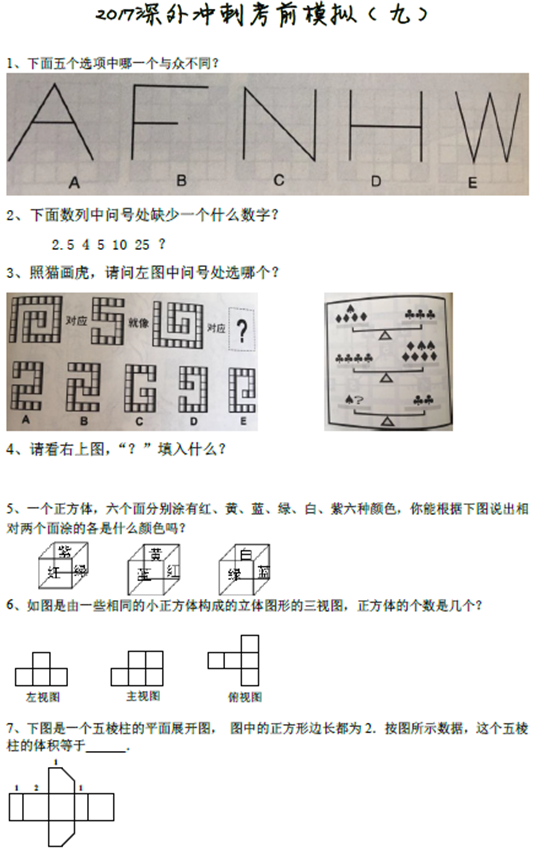 2017年深圳外国语考前冲刺模拟题(九)