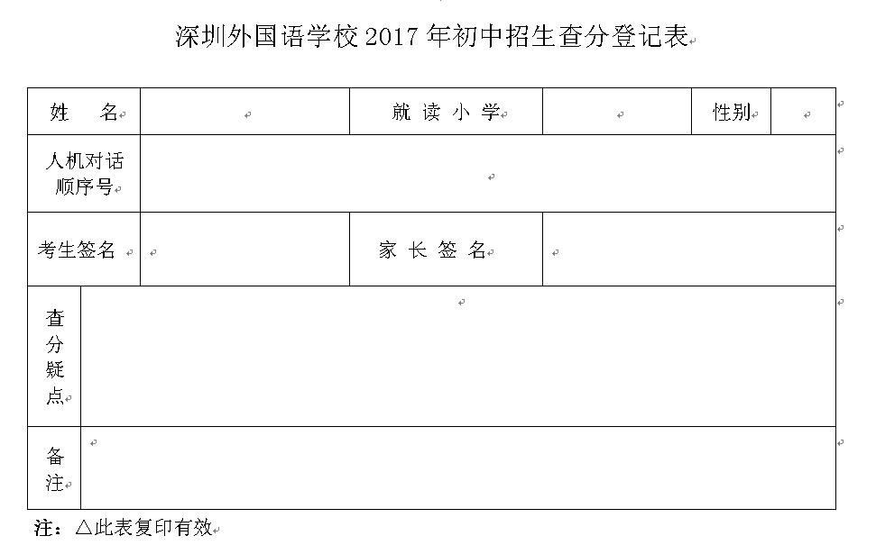 1.申请查分应填写《深圳外国语学校2017年初中招生人机对话查分登记表》(到我校门卫处领取或点击这里下载),递交到我校初中部门卫处。
