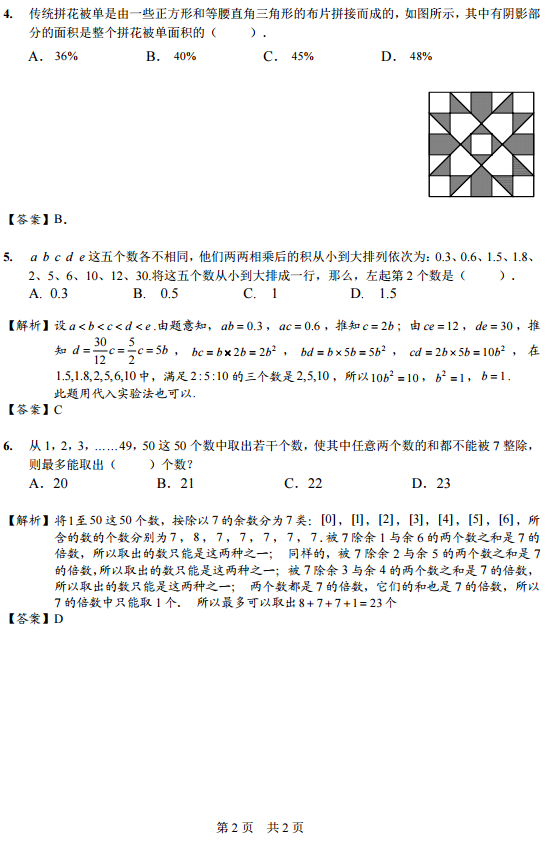 2018年第23届深圳华杯赛初赛小高组模拟试题答案(2)