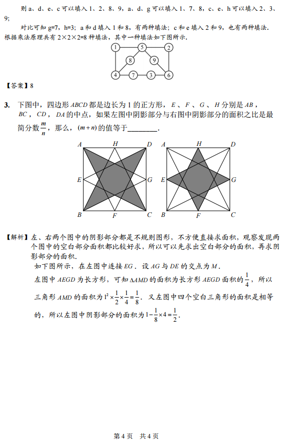 2018年第23届深圳华杯赛初赛小高组模拟试题答案(4)