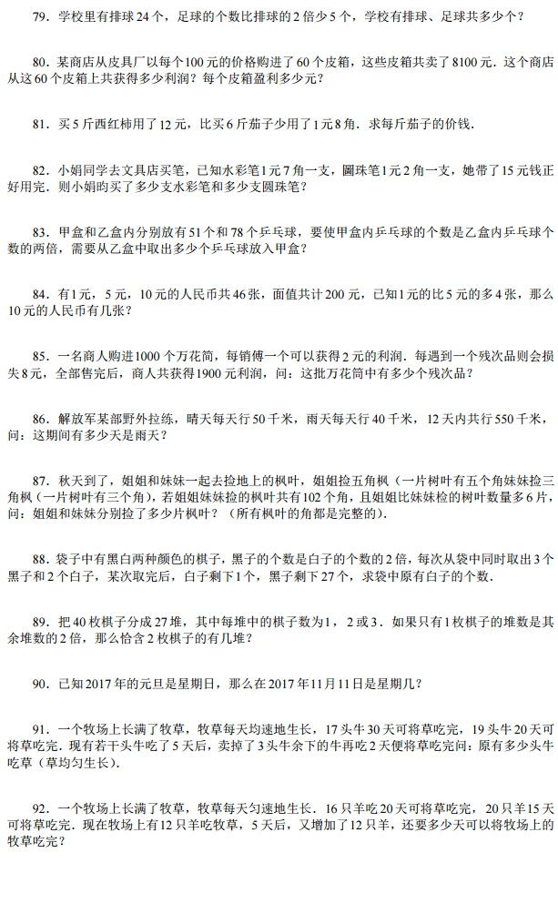 2018年希望杯四年级考前100题(8)