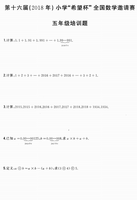 2018年希望杯五年级考前100题