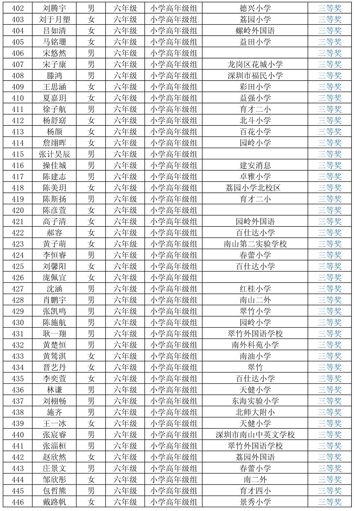 2018年深圳鹏程杯英语获奖名单公布(3)