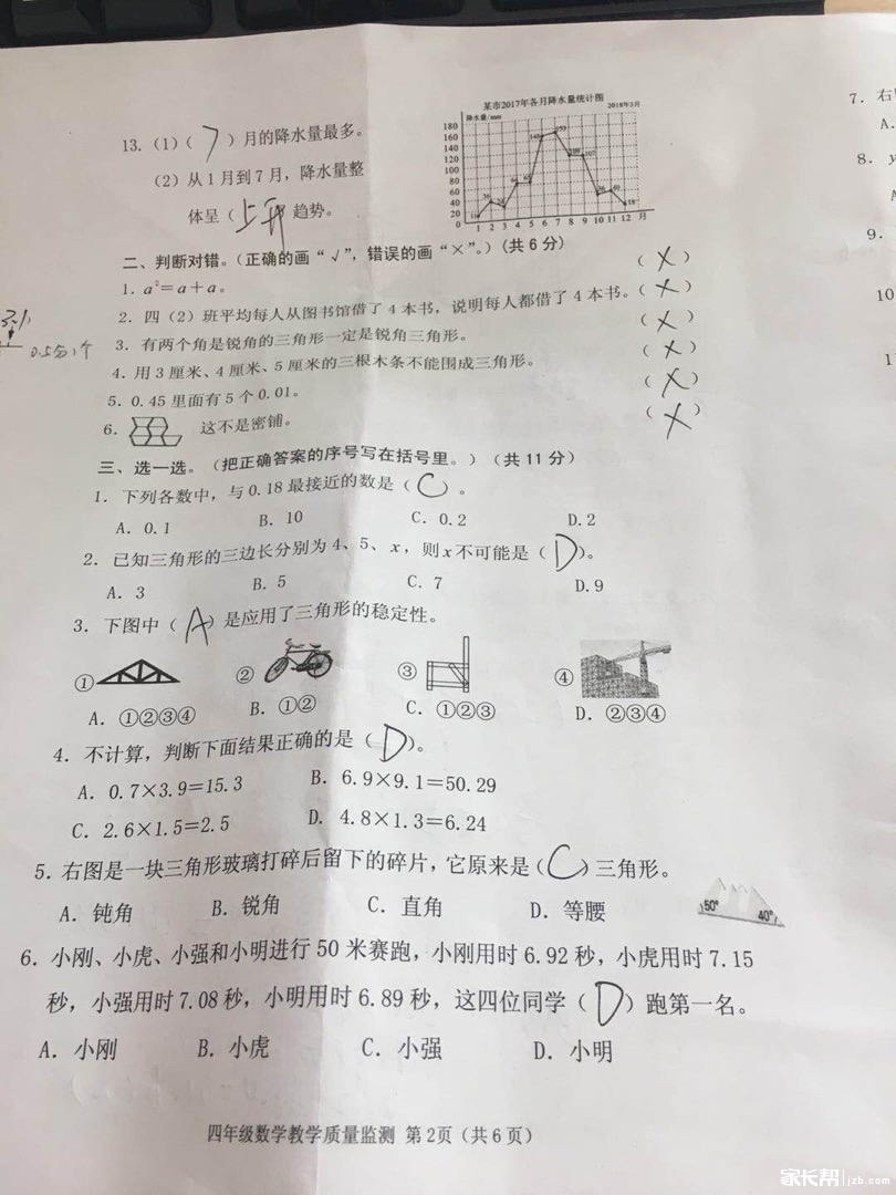 2017-2018年深圳南山区四年级期末数学试卷(2)