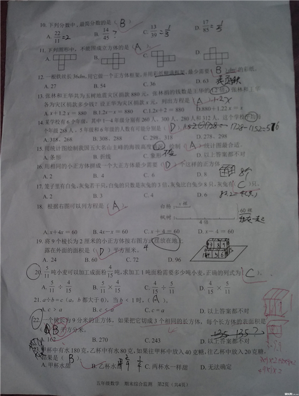 2017-2018年深圳龙岗区五年级期末数学试卷(2)