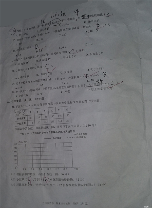 2017-2018年深圳龙岗区五年级期末数学试卷(3)