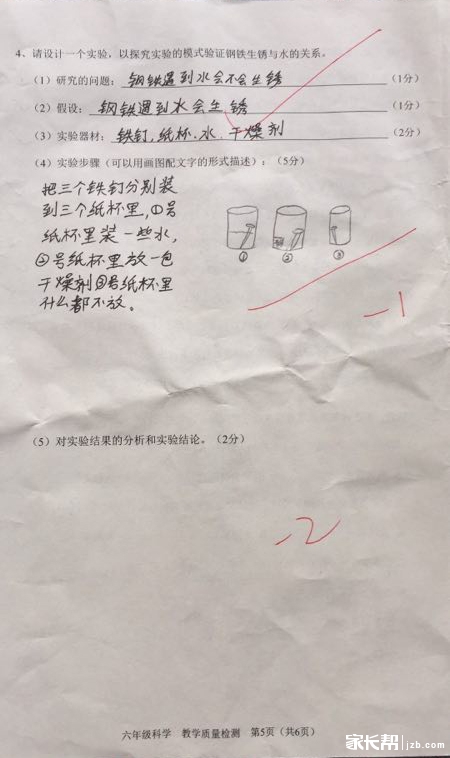 2017-2018年深圳福田区六年级期末科学试卷(5)