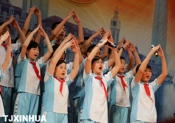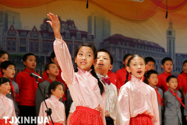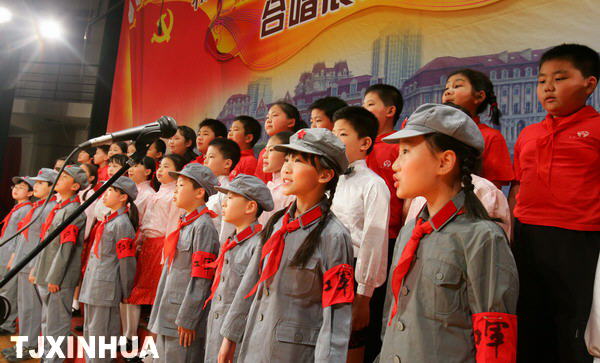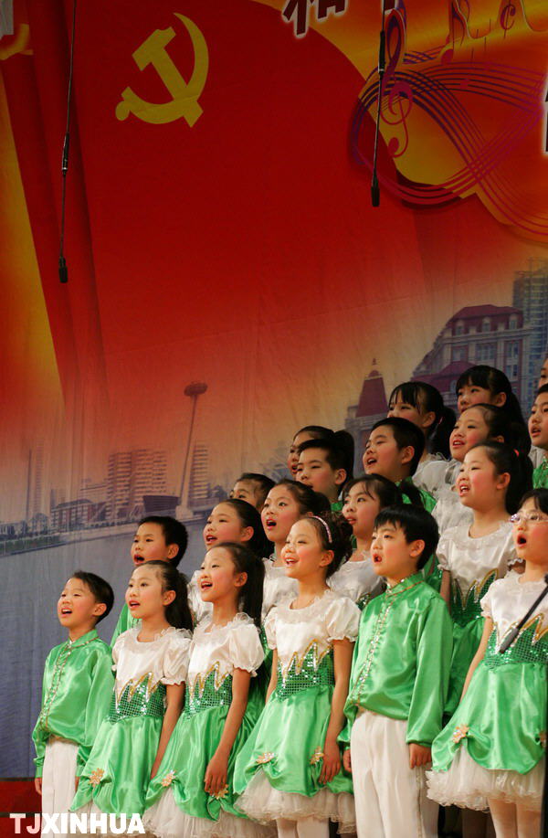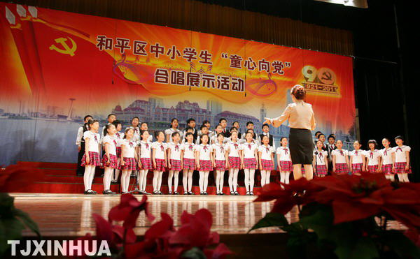 2011年5月17日 今年是中国共产党成立90周年,天津市组织开展了丰富多彩的庆祝活动。5月14日,天津和平区中小学“童心向党”合唱展示活动,在二南开中学举行。来自15所中小学的近千名学生,分别以教学班、合唱团为单位,进行了红色歌曲的演唱展示。通过活动教育广大青少年铭记革命历史,继承光荣革命传统,弘扬民族精神,立志报效祖国。