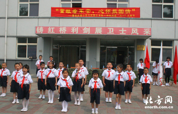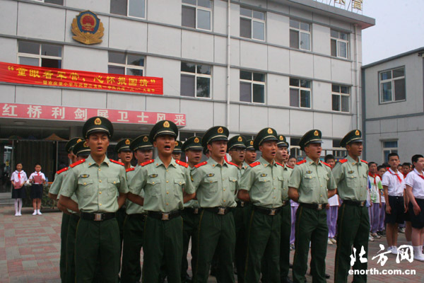 活动中,同学们为官兵们表演了多姿多彩的节目,受到了在场官兵的热烈欢迎。而官兵们通过唱红歌的方式向学生们送上六一的祝福。