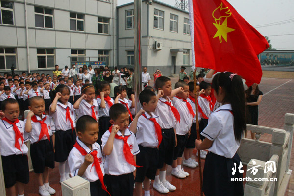 5月30日,天津市红桥区欢庆里小学的学生来到了天津武警三支队一中队兵营中,与武警战士们一起庆祝六一儿童节。