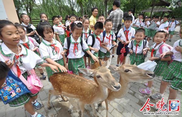 昨日,红桥区实验小学的50余名小学生来到天津市动物园,为刚刚康复的小马熊(棕熊的亚种)捐献爱心,并将对其进行不定期助养活动。带队老师张涛告诉记者,此次爱心捐助活动是学校为丰富孩子们的暑期活动开展的,希望通过此活动能培养学生从小爱护动物的意识。
