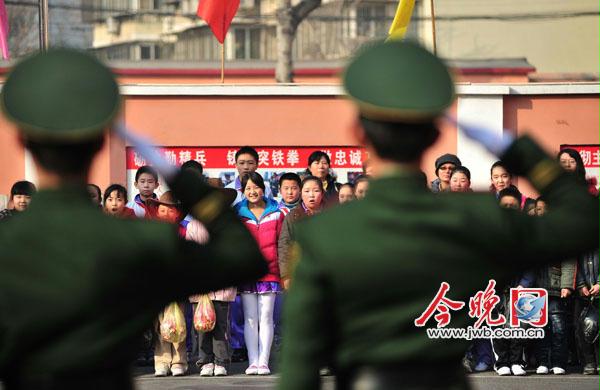 官兵为小学生展示精彩的队列和擒敌拳表演