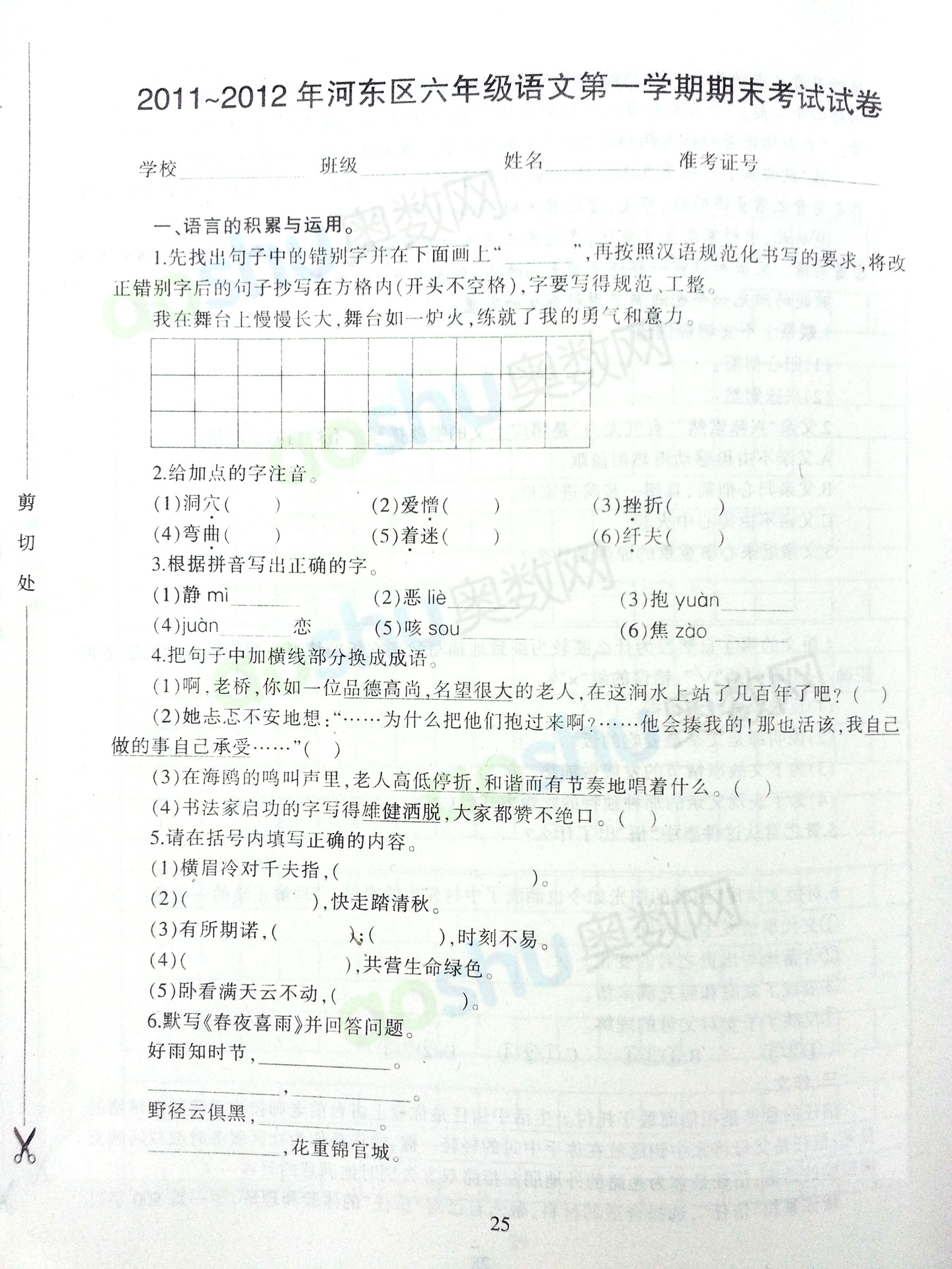 2011-2012河东区六年级语文第一学期期末试卷 奥数网整理 2012-12-31 16:27:54 2011-2012河东区六年级语文第一学期期末试卷 请下载附件: 2011-2012河东区六年级语文第一学期期末试卷 (本地下载 查看答案) 相关推荐: 天津市小学历年六年级第一学期期末考试试题及答案汇总