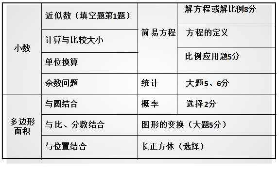 三、小升初考试中五年级考试内容