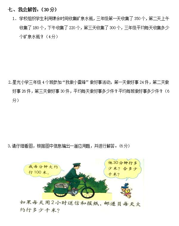 天津市三年级数学下册第三、五单元测试题(一)(4)