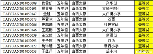 2014太原走美杯五年级获奖名单