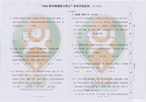 数学解题能力(迎春杯)复赛三年级试卷及答案 家长帮社区 2014-03-27 10:21:08 太原奥数网 数学解题能力展示(迎春杯)2月6日复赛结束,很快获奖名单出来,三年级的复赛真题及答案出炉。 点击下载>>>数学解题能力(迎春杯)复赛三年级试卷 查看答案请点击下一页 首页 上一页 下一页 尾页
