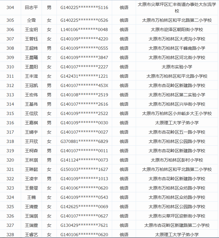 2015太原外国语小升初俄语志愿报名名单公示(14)