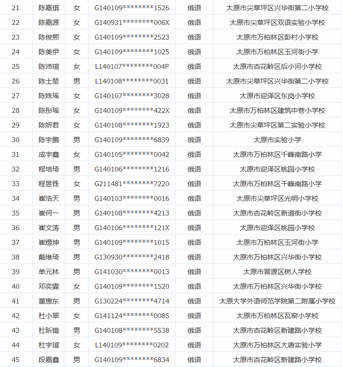 2015太原外国语小升初俄语志愿报名名单公示(2)