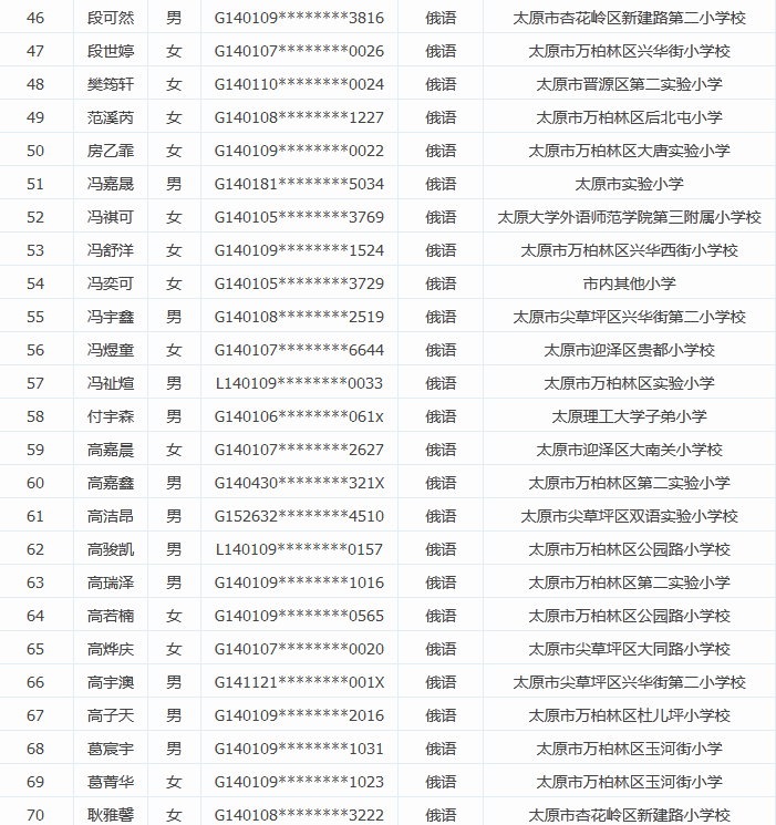 2015太原外国语小升初俄语志愿报名名单公示(3)